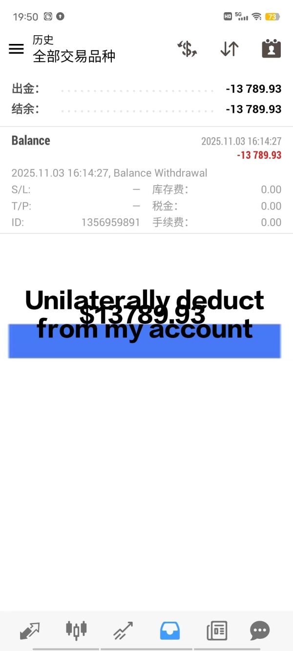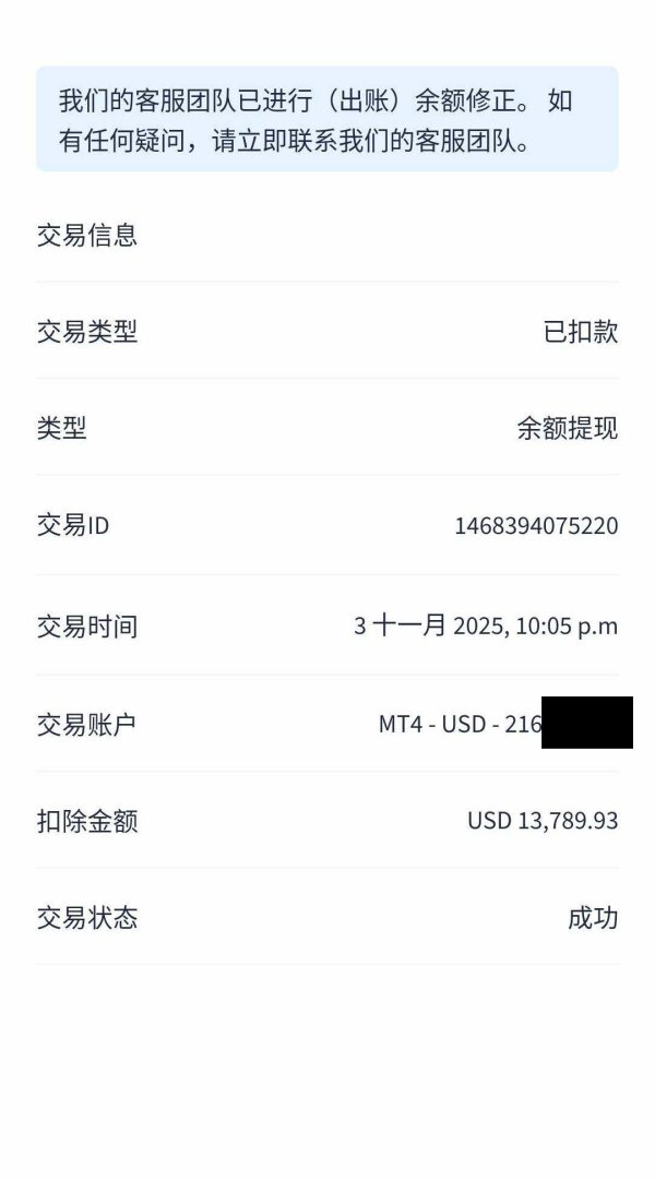 兄弟们FXTM是黑平台,大家小心,这样直接把客户账户里钱直接抹平,然后再把账户给关了,操作亏损爆仓钱没了,愿赌服输毫无怨言,这样流氓一样直接扣除客户的钱,然后把客户的账户全部销号,事后随便发个邮件,算啥,