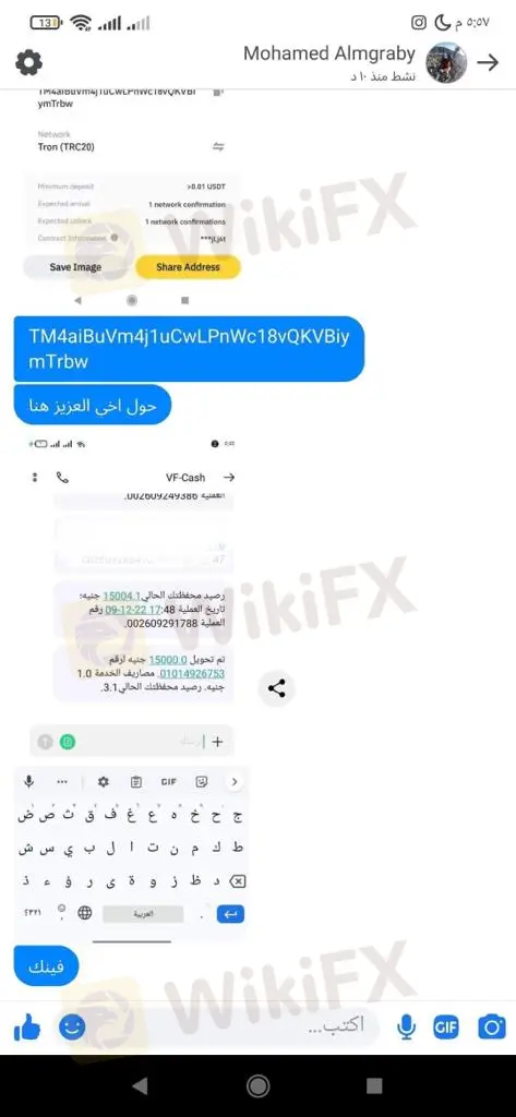 يقول المستثمر: تواصل معي شخص يدعى محمد المغربي من منصة deriv واقنعه بأنه يمكنه شراء usdt مقابل مبلغ قدره ١٥٠٠٠ جنيه مصري