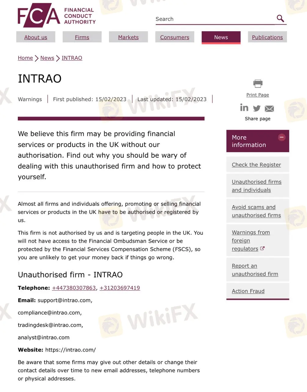 وفقًا لـ FCA ، لا يحق للوسيط تقديم خدمات مالية. في الواقع ، صرحت هيئة السلوك المالي (FCA) أنه ليس وسيط مرخص ، وبالتالي لن تحصل على أي حماية. تثبت مثل هذه التحذيرات بشكل شبه مؤكد أن شركة ما تقوم بنوع من عمليات الاحتيال - لذا امتنع عن اختيار الشركات المشبوهة التي حظيت بتقييم سلبي من السلطات المالية ذات السمعة الطيبة مثل FCA. الطريقة الوحيدة للتأكد من أن استثمارك في أيد أمينة وأنك ستعامل بإنصاف ووفقًا لجميع القوانين هي اللجوء إلى وسيط شرعي ومرخص.