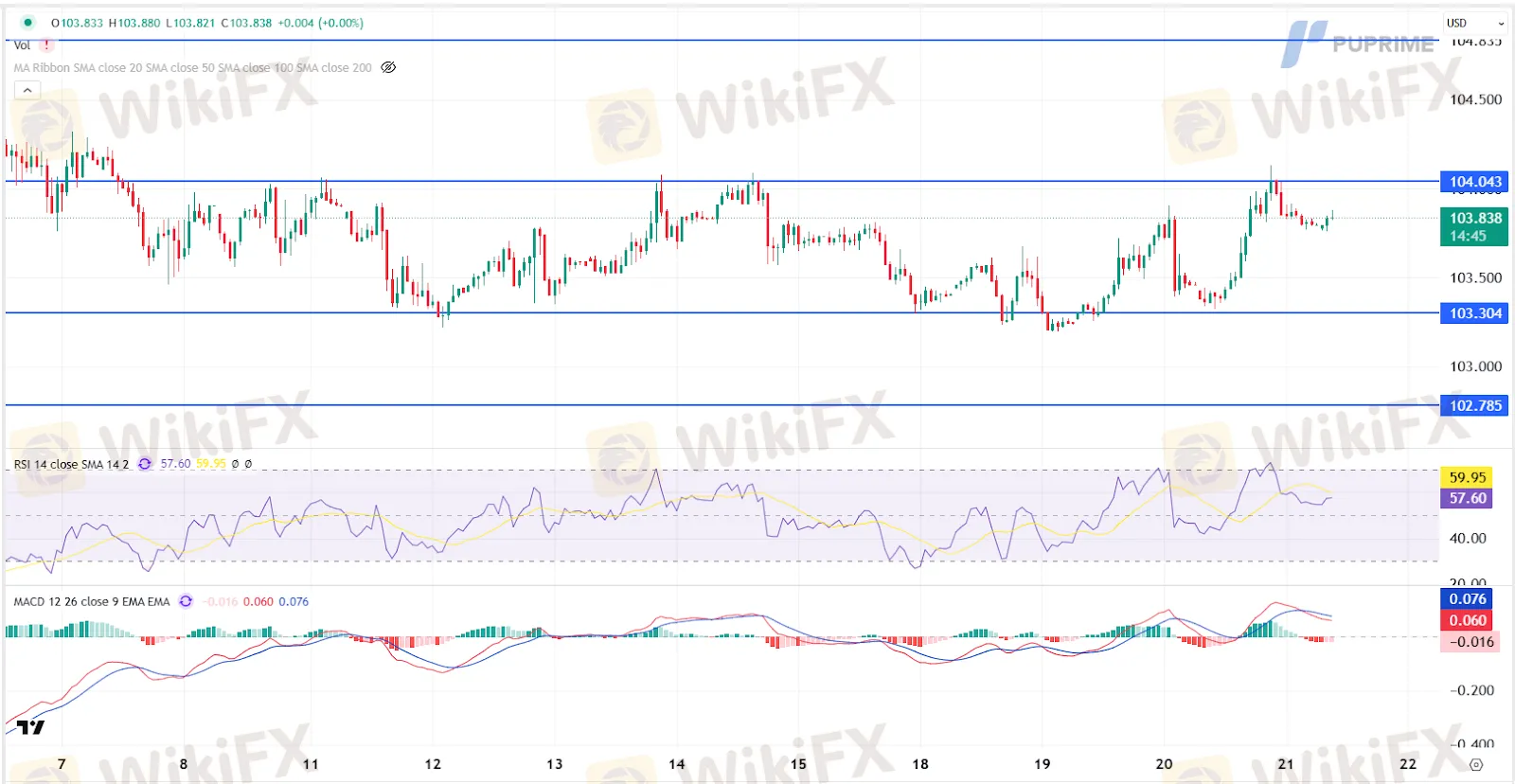 The Dollar Index is trading higher while currently near the resistance level. MACD has illustrated diminishing bearish momentum, while RSI is at 58, suggesting the index might extend its gains after breakout since the RSI stays above the midline.