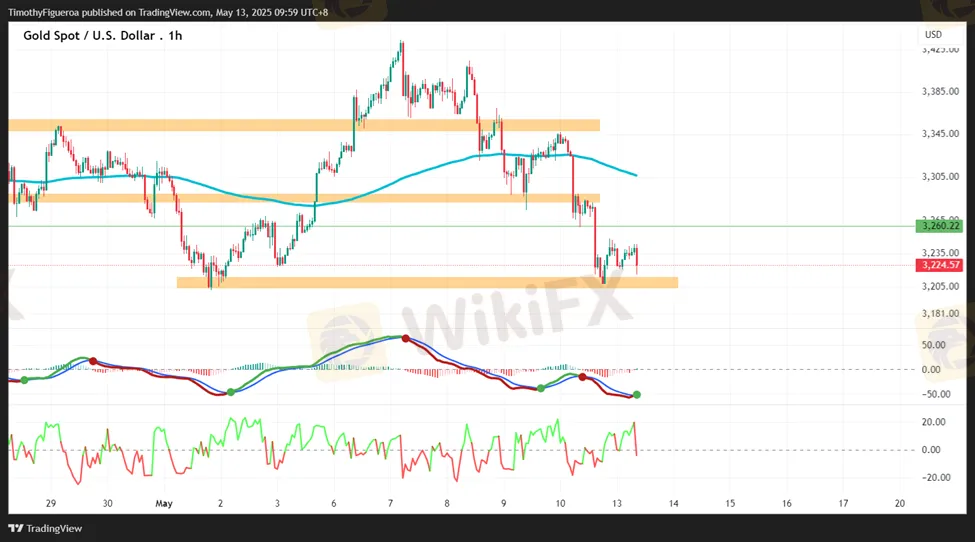 GOLDGold prices have continued their decline, now showing signs of further downside. We are seeing increased selling momentum and volume, as confirmed by technical indicators. The MACD reflects a strong bearish trend, while the RSI recently signaled overbought conditions before reversing, suggesting a deeper move lower is likely. The break below 3260.22, a critical support level, confirms a shift in overall momentum to the downside. Fundamentally, the bid for metals has weakened significantly following renewed optimism over trade relations. In a joint statement, the U.S. announced a temporary reduction in tariffs on Chinese goods from 145% to 30%, while China agreed to cut its tariffs on American imports from 125% to 10%. This easing in trade tensions is dampening demand for safe-haven assets like gold.