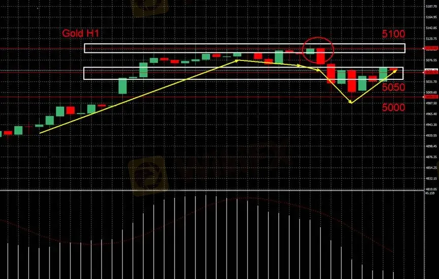 If prices hold above USD 5,000 and consolidate above USD 5,050, the bullish structure remains intact, with another test of USD 5,100 possible.