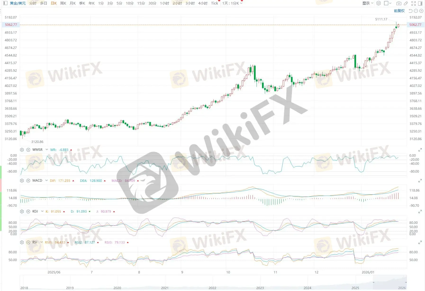 According to ETO Markets monitoring, on January 26 (Monday), spot gold surged on safe-haven demand. Prices broke above USD 5,100 per ounce and hit an intraday high of USD 5,110.86. Gold closed up around 2% at USD 5,077.22 per ounce.