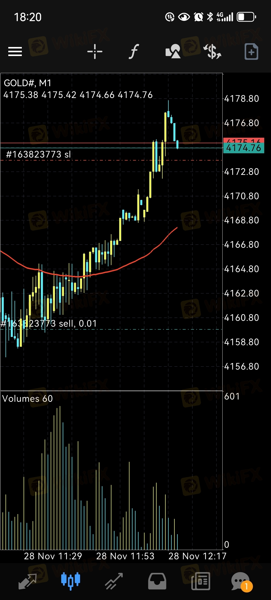 关于您反馈的订单问题,您交易的是0.01手黄金卖单,空单是卖价开仓买价平仓,而K线图上显示的是卖价,因此需要加上实时点差才是您设置的止损的执行价格(买价)。您该笔订单设置的止损价格为 4173.75,订单于平台时间2025年11月28日的13时07分 触发止损平仓,平仓价格为 4173.76, 相关部门查看您的订单是按当时市价执行平仓的。