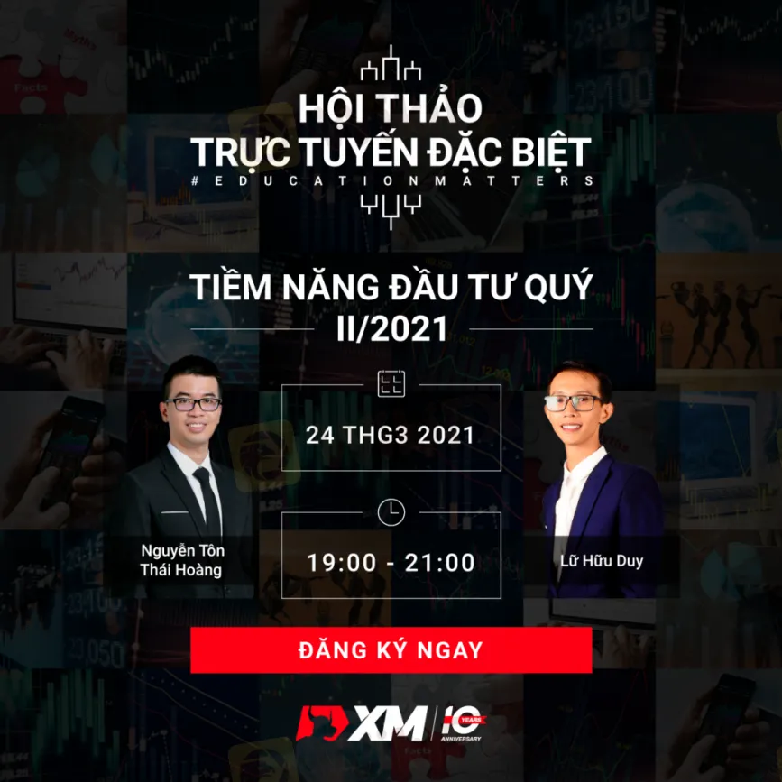 1. Always at the forefront of professional trader education, XM continues to offer online seminars with its veteran instructors. This special seminar recorded the first appearance of two lecturers XM - Nguyen Ton Thai Hoang and Lu Huu Duy participating in discussions from two different perspectives and experiences, on the same topic: Potential investment in Q2 / 2021.