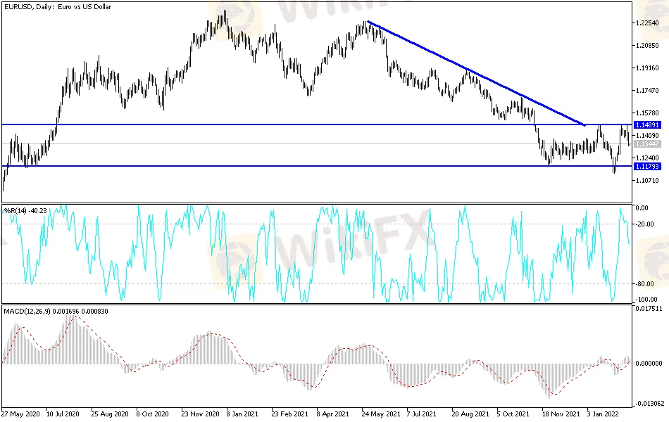 According to the technical analysis of the pair: The recent move is still in favor of the bears' strength and control over the performance of the EUR/USD currency pair. The pair is closest to the support levels 1.1315 and 1.1265, which are important to change the general trend to a bearish one. On the other hand, according to the performance on the daily chart, the resistance 1.1455 will remain an important opportunity for the bulls to return to control again. The currency pair, as is the case for the forex currency market in general, is on an important date this week with the announcement of the content of the minutes of the last meeting of the US Central Bank and the statements of a large number of bank officials throughout the week.