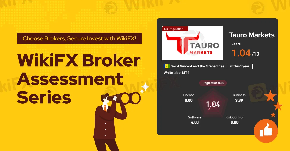 Tauro Markets, situated in Saint Vincent and the Grenadines, operates as an online trading platform. The physical address of Tauro Markets is Suite 305, Griffith Corporate Centre, Beachmont, Kingstown, Saint Vincent & the Grenadines. It caters to traders by offering a diverse array of financial instruments, including indices, forex, metals, commodities, shares, and cryptocurrencies. However, WikiFX has given this broker a low score of 1.04/10.