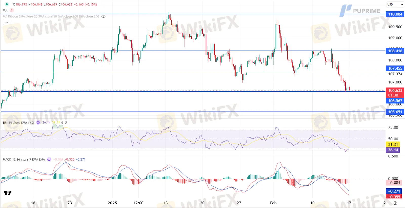 Support level: 107.05, 106.45