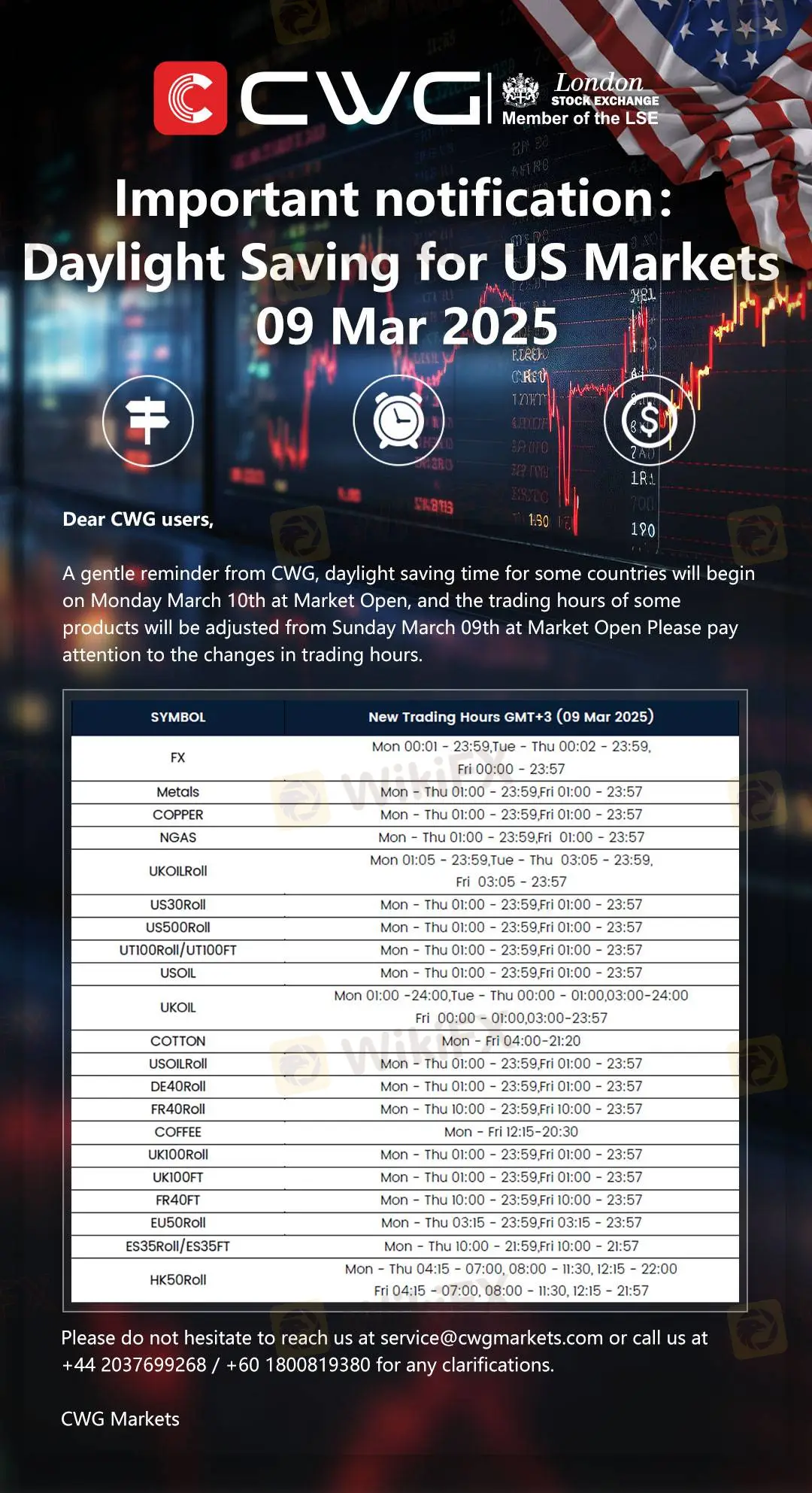 Important notification:Daylight Saving for US Markets 09 Mar 2025