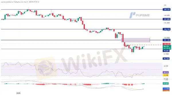 The Dollar Index gained slightly but is approaching its critical resistance level at near 100.00, a break below, which suggests a solid bullish signal for the index. The RSI has jumped slightly, while the MACD has a golden cross at the bottom, suggesting that the bearish momentum is easing.