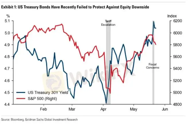 In recent years, the traditional 60/40 investment portfolio that focuses on stocks and bonds has gradually become ineffective under the impact of tariff policies and economic uncertainty. Goldman Sachs pointed out that long-term US Treasury bonds have failed to play a role in hedging the downside risks of the stock market recently. Whether it is the recession concerns caused by the tariff escalation in April or the surge in borrowing costs caused by fiscal sustainability concerns in May, US Treasury bonds have not reflected their safe-haven value. This phenomenon is not accidental. In history, during periods of inflation or commodity shocks, the stock and bond markets often fall simultaneously.