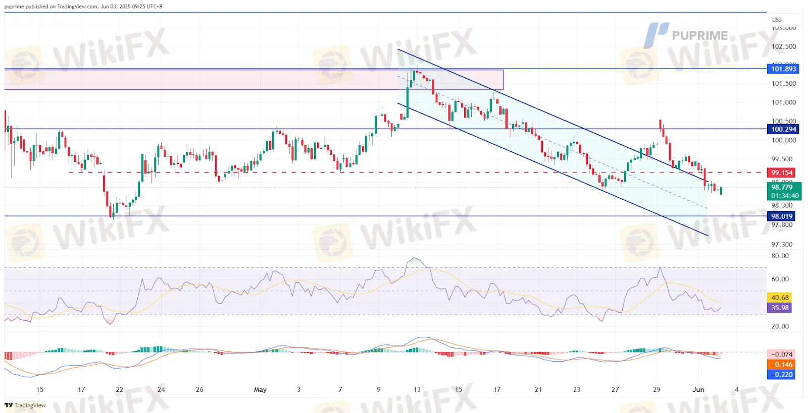 The U.S. Dollar Index has continued its downward slide, breaking to a fresh one-month low at 98.58 as bearish momentum builds. This decline has completely erased the index's gains from its previous rebound, leaving it vulnerable to further losses as it approaches a critical support zone around the 98.00 level. A decisive break below this psychological support could open the door for more substantial declines, potentially pushing the dollar to levels not seen in three years.