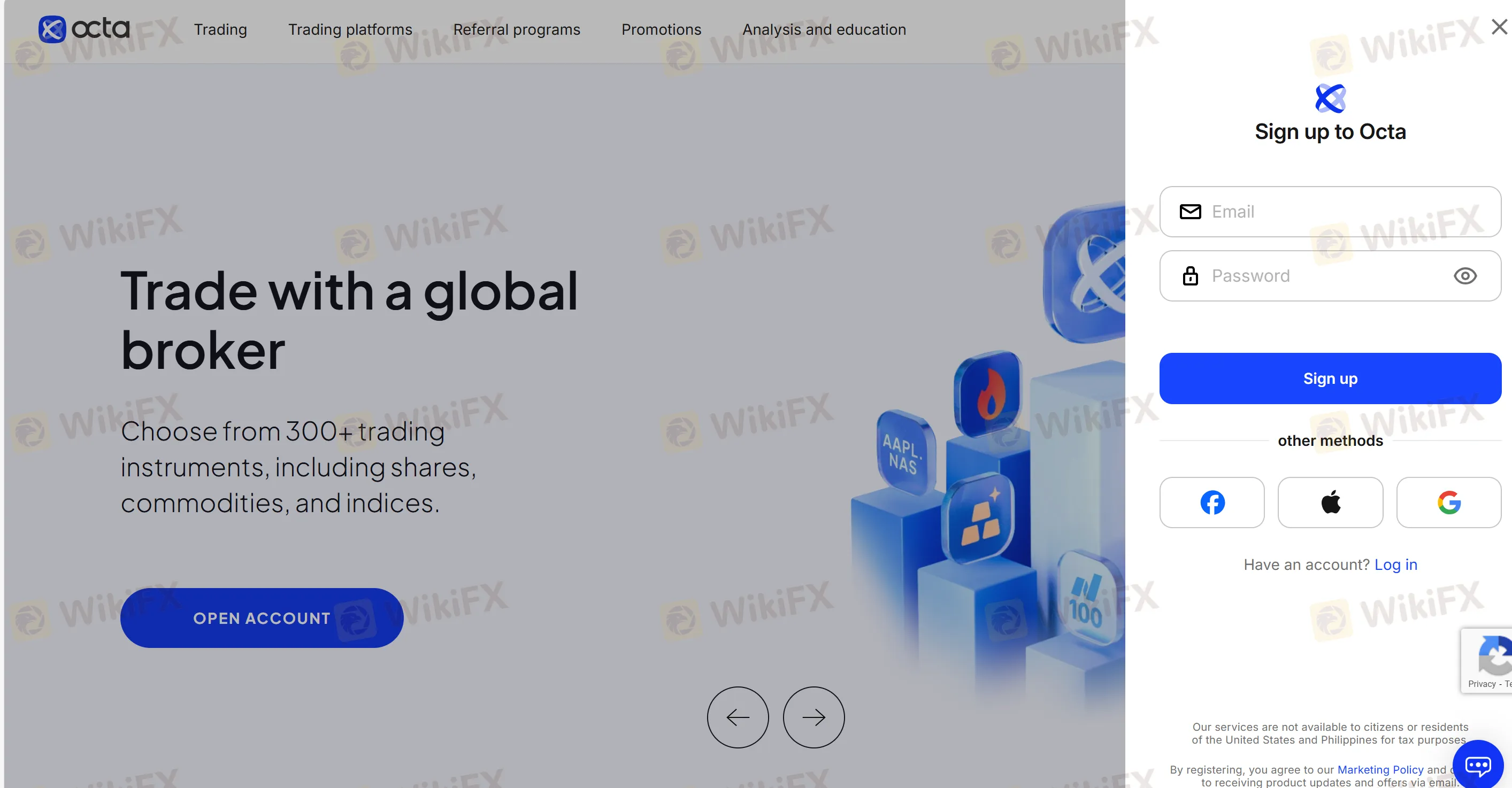 Step 2: Click “OPEN ACCOUNT” or “Sign Up” and enter your name, email, and preferred platform.