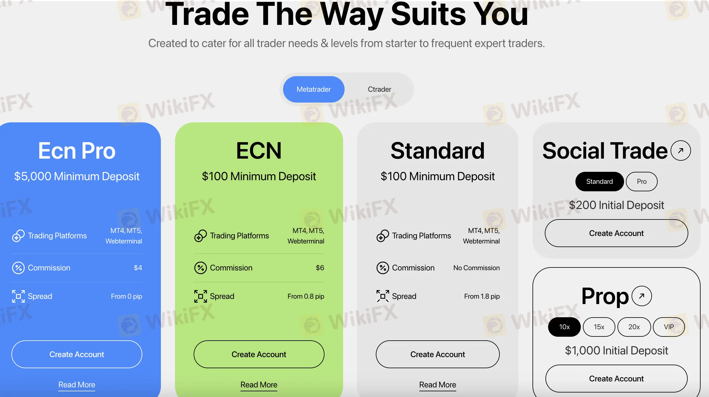 A: It starts at $100 for a Standard account, $500 for ECN, and $5,000 for ECN Pro.