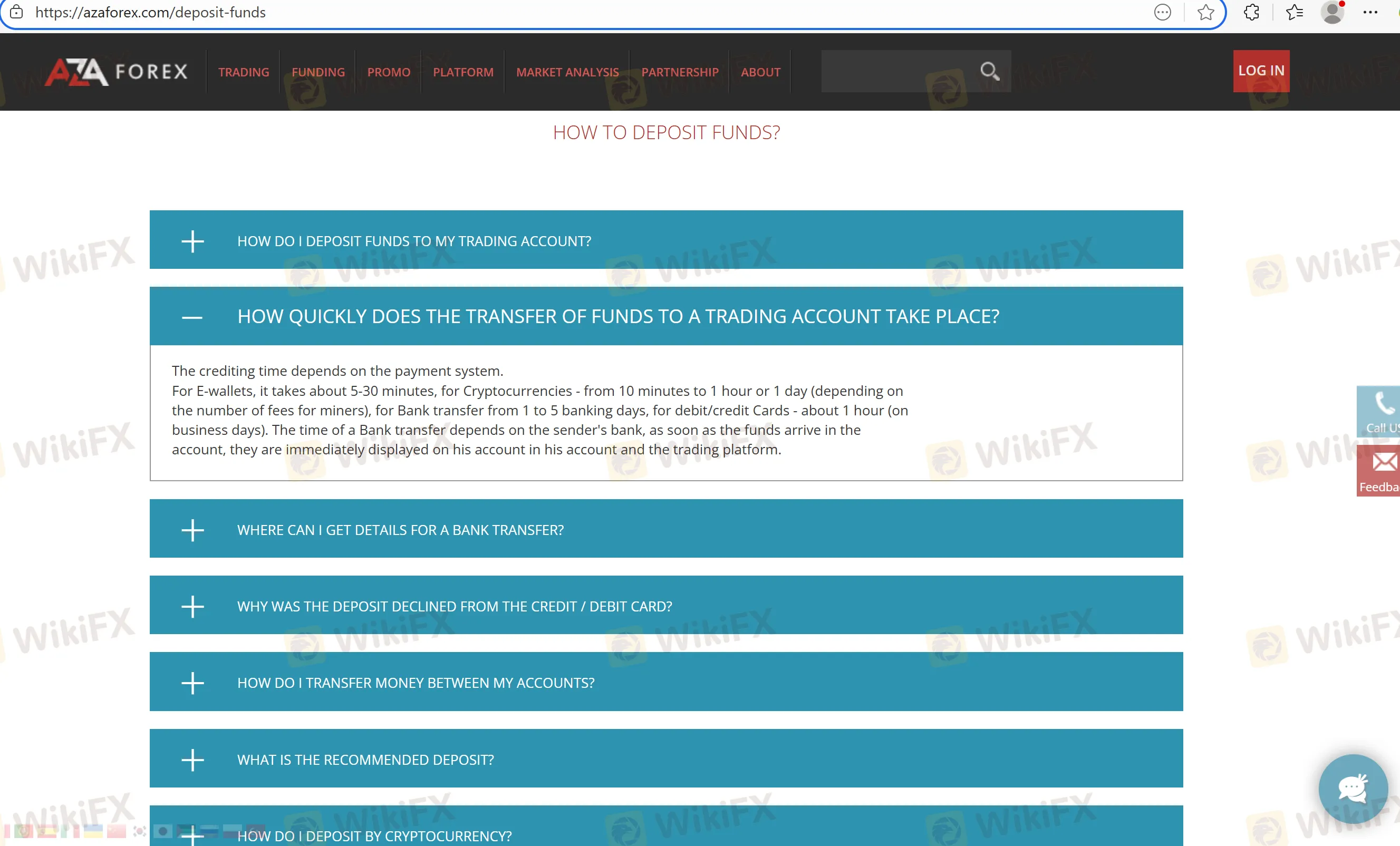 For deposits, AZAforex allows real-time crypto processing, often completed within minutes, especially for major coins like BTC or ETH. For withdrawals, the broker promotes fast processing—typically within 1 hour on business days—but real-world times can vary depending on the method chosen and verification status.