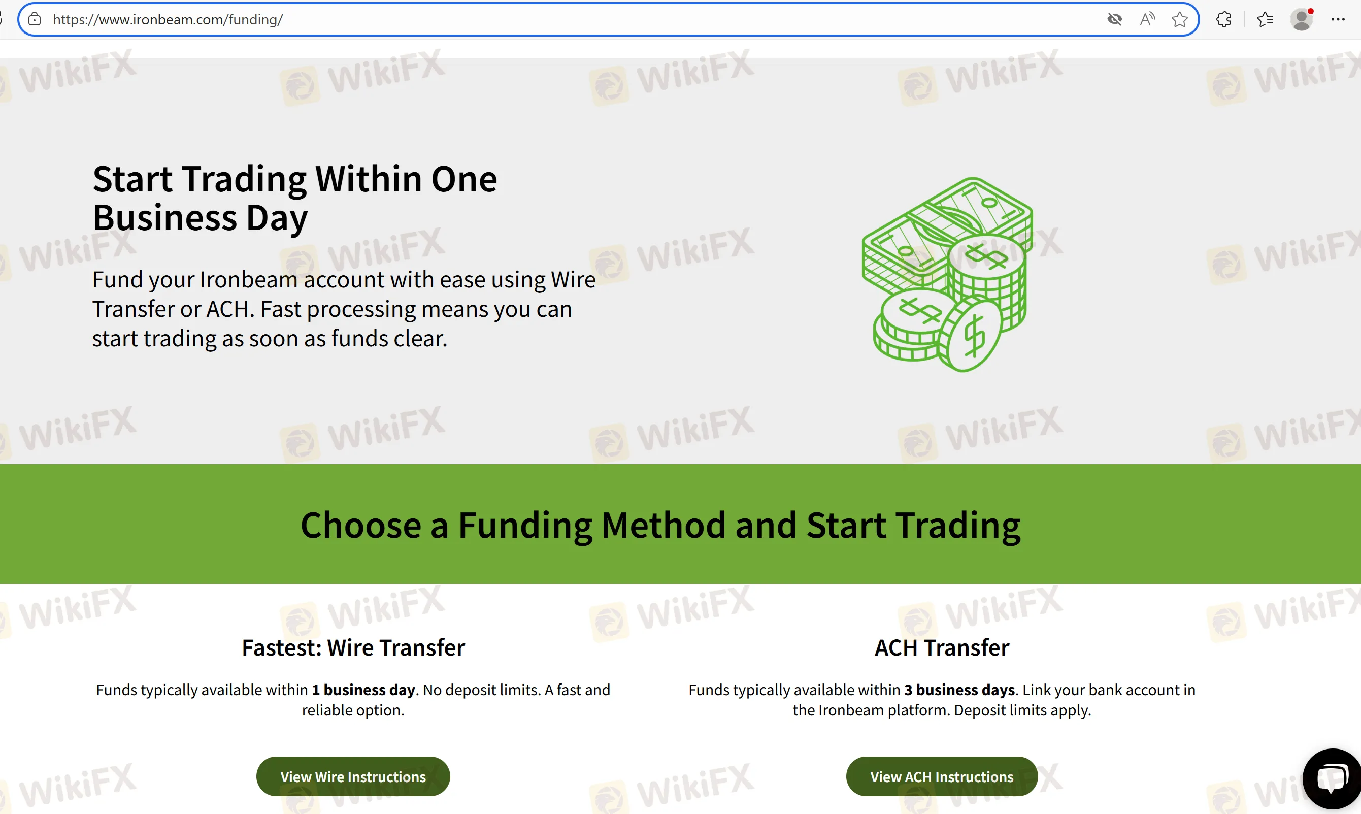 Ironbeam offers ACH and Wire Transfer as its primary deposit and withdrawal methods. There are no minimum deposit requirements, making it accessible to a wide range of traders.