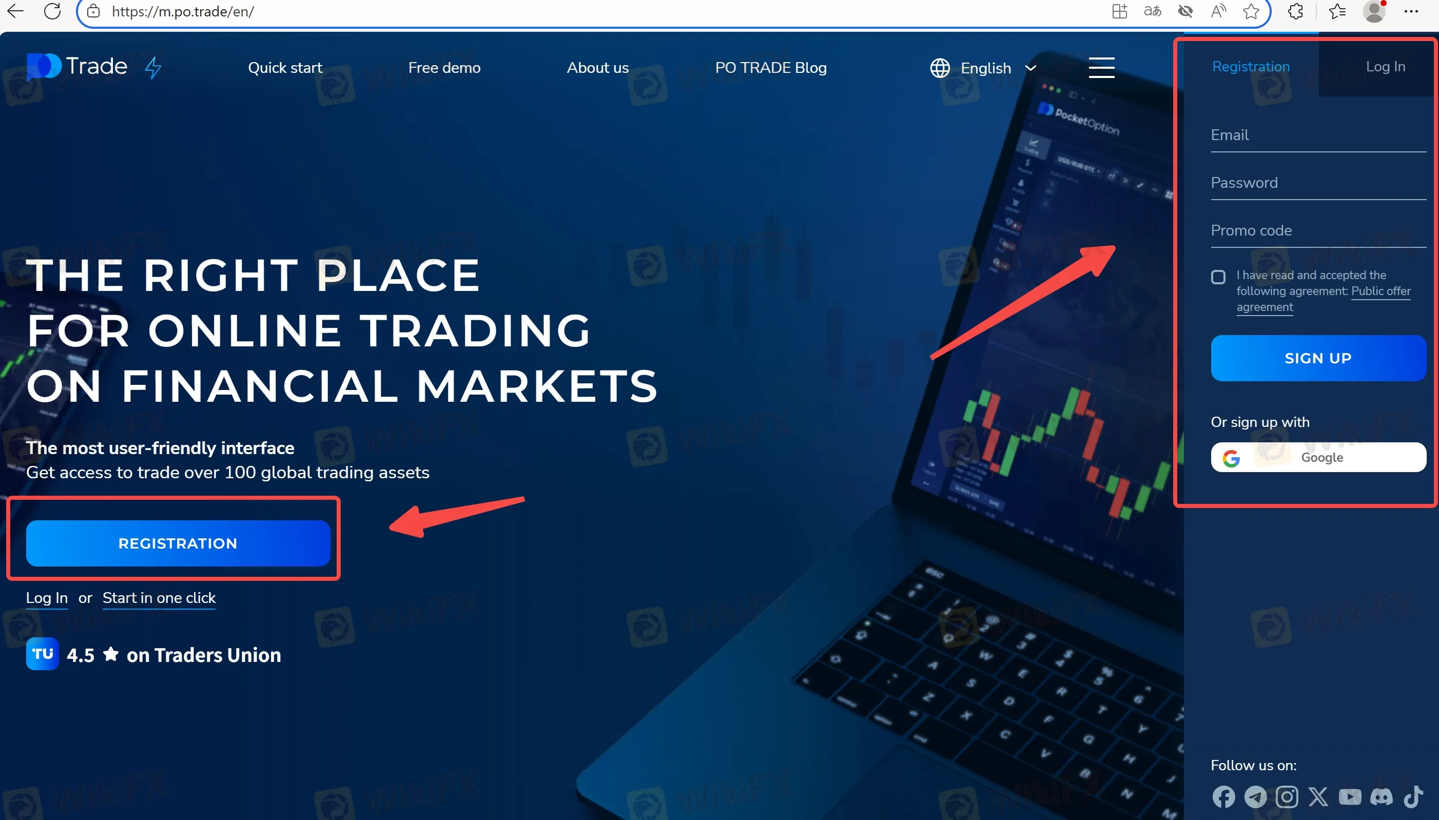 - Access the web platform at m.po.trade.
