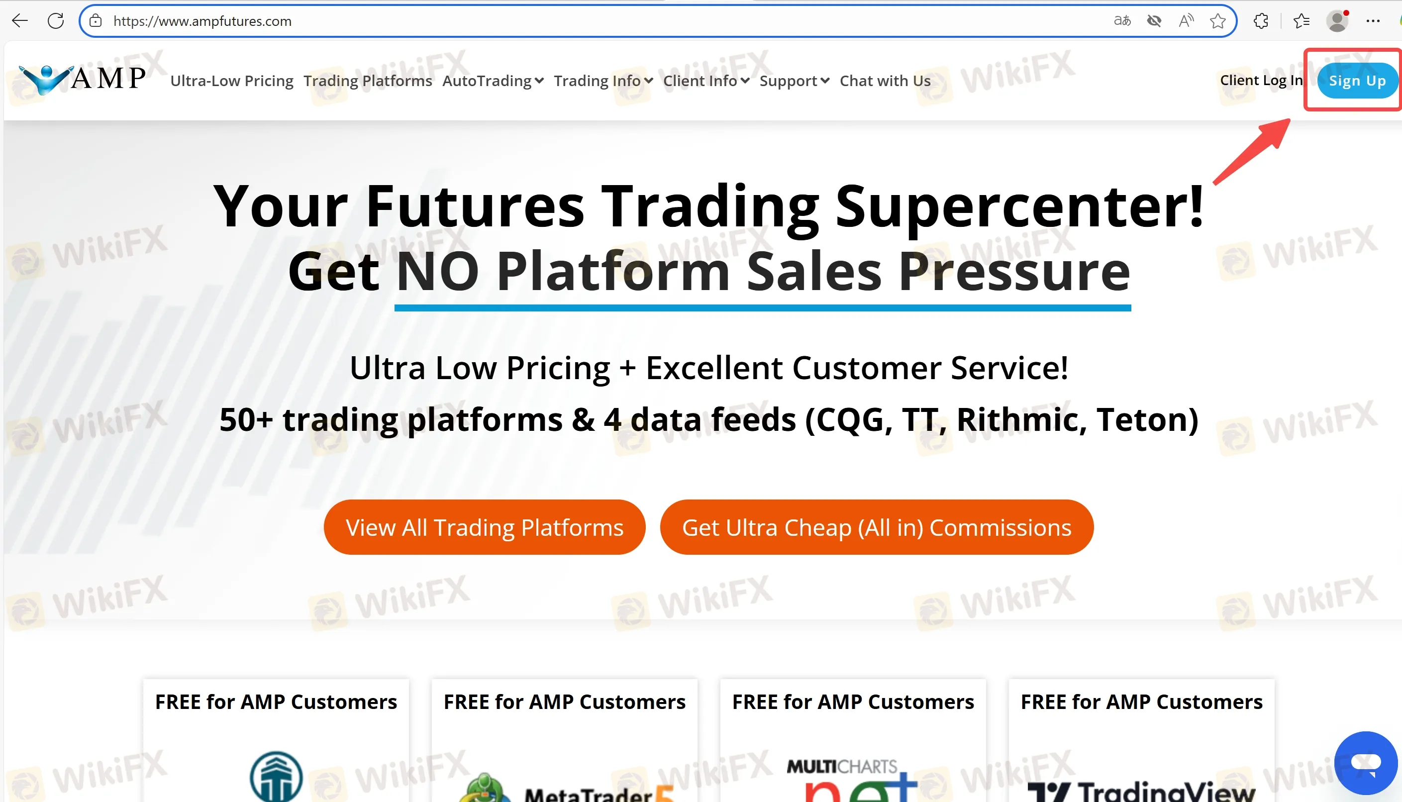 Step 1: Visit AMP Futures official site and click “Sign Up.”