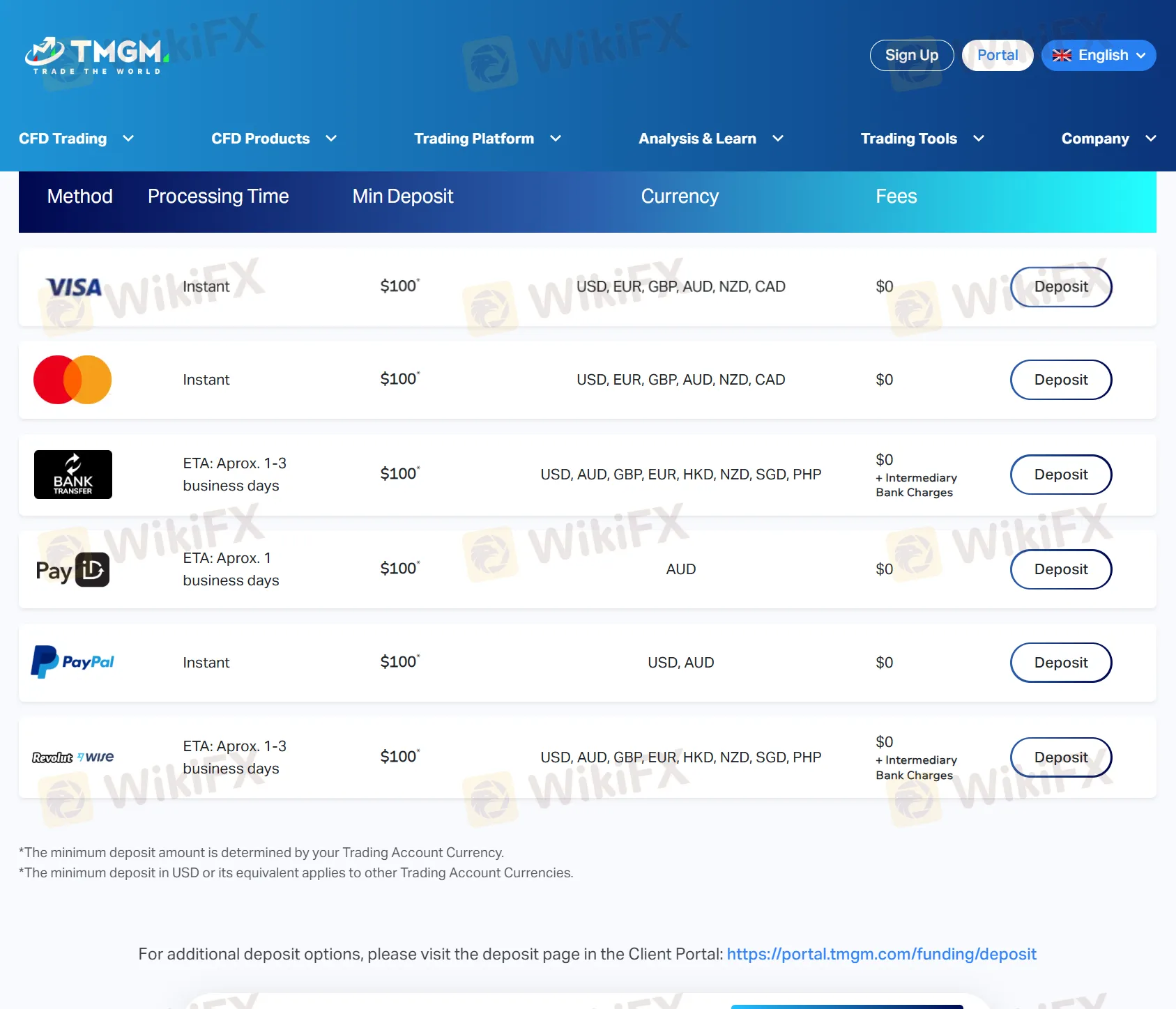 • TMGM does not charge deposit/withdrawal fees; banks or payment providers may charge their own fees.