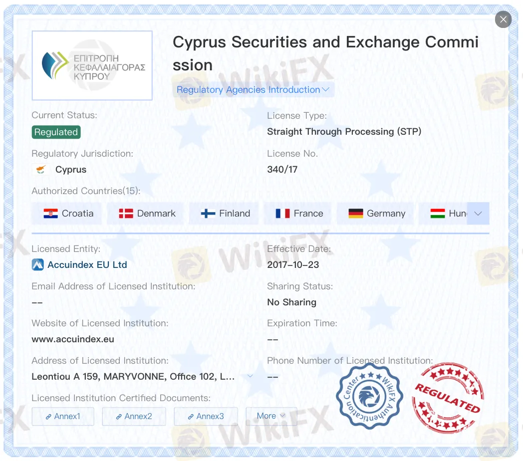 The primary pillar of trust for AccuIndex is its authorization by CySEC (License No. 340/17). This Tier-2 regulation mandates strict compliance standards, including the segregation of client funds and participation in the Investor Compensation Fund (ICF).