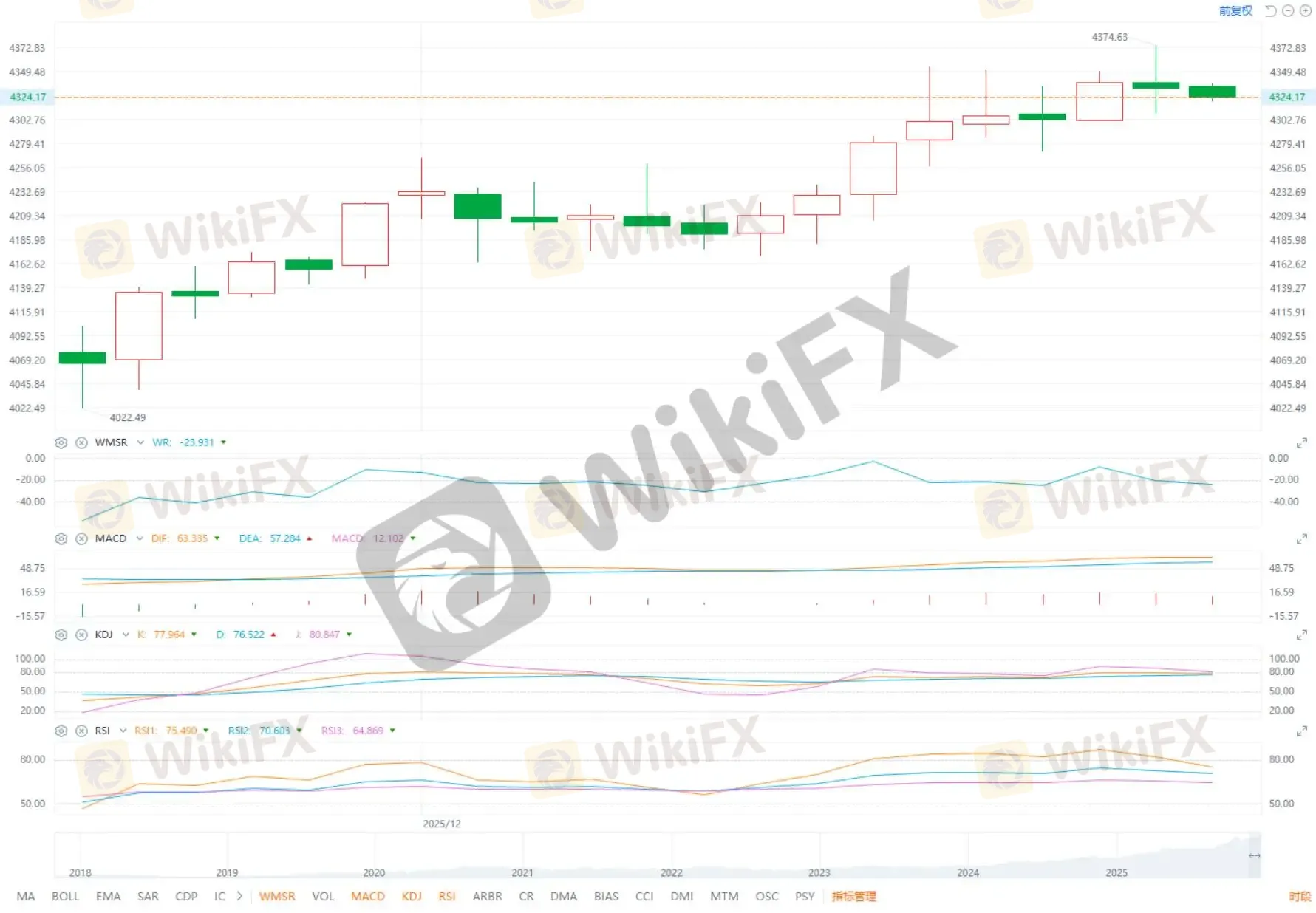 According to ETO Markets monitoring, on Thursday, December 18, spot gold spiked sharply intraday and briefly surged to USD 4,374 per ounce, marking a near two-month high. Heavy selling pressure then emerged at elevated levels, forcing prices to retreat quickly. Gold eventually closed at USD 4,332.31 per ounce.