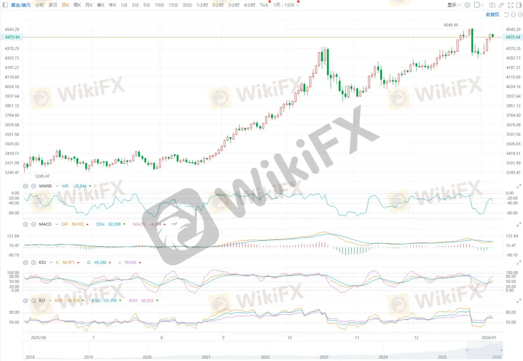 On January 7 (Wednesday), during the Asian session, spot gold opened higher before pulling back. Prices are now trading near the USD 4,470 level, retreating from overnight highs. Gold remains below the record peak of USD 4,549 per ounce and has entered a phase of high-level consolidation.