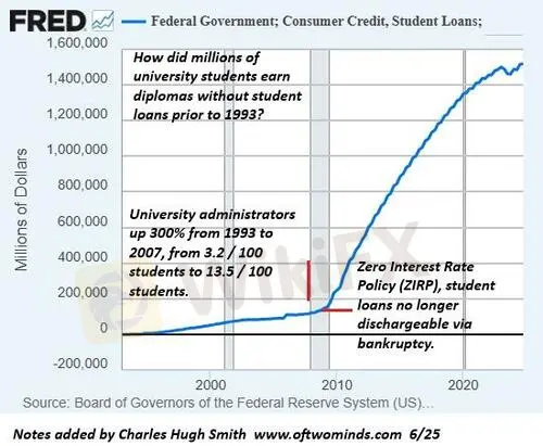 As for saving the system by converting fiat money to precious metals or cryptocurrencies:the debt--and the income needed to service the debt--will also be converted, and that doesn't change the inevitable collapse of credit-asset bubbles and all the economic activity that depended on the permanent expansion of that credit-asset bubble.