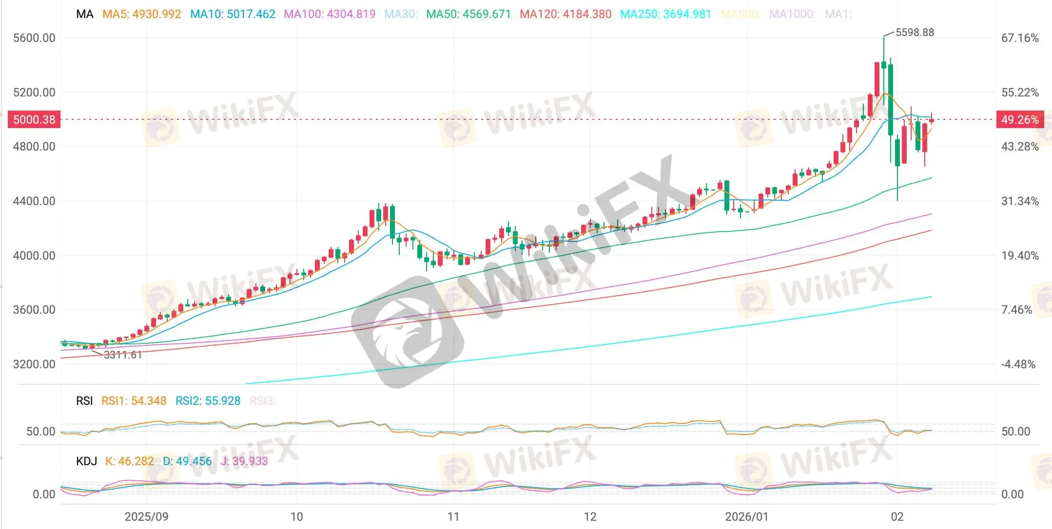 Abstract:Market ReviewAccording to ETO Markets monitoring, after plunging nearly 3.9% in the prior session, spot gold staged a sharp rebound on Feb 6 (Friday). Prices surged close to 4% intraday, briefly appro