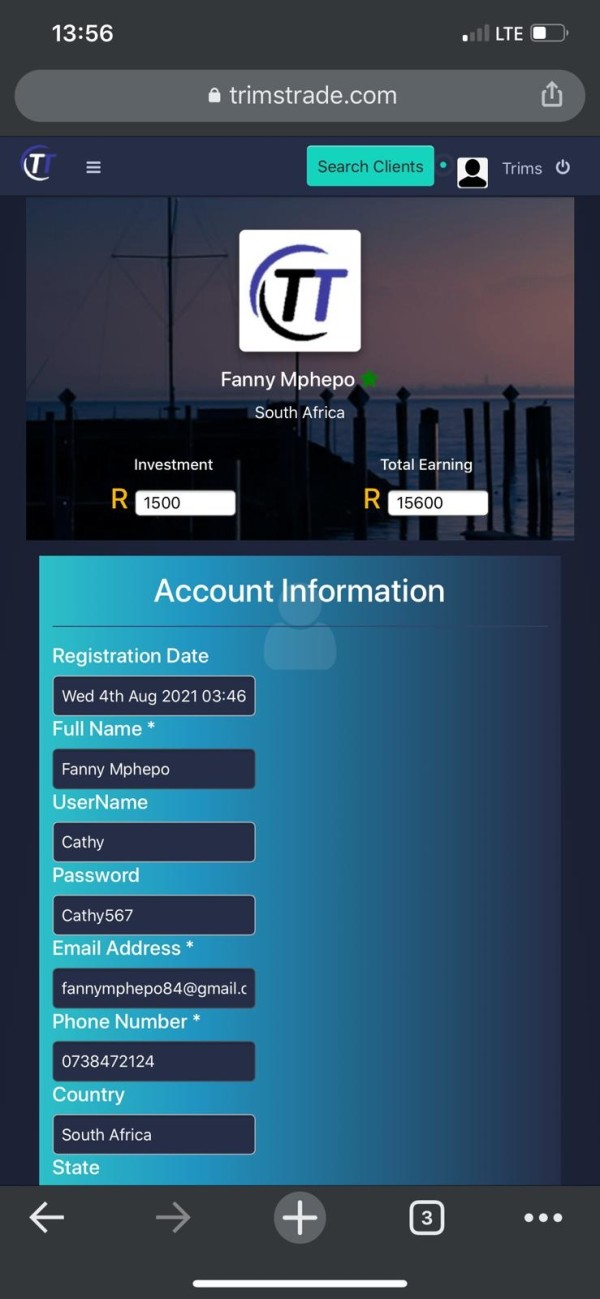 The first one she sent me a friend request on Facebook a woman with a name called Stella irensponded and she inboxed and I gave her my phone number. After alot of convincing for her ideposited the money, with hope that after 48hrs iwill get the profits, the next day after deposit she sent me amsg that my trading acc has changed to long term I must deposit the 8000 thus where isaw that this now a problem so I refused then we stopped talking ideleted everything 2wks after the ceo.
