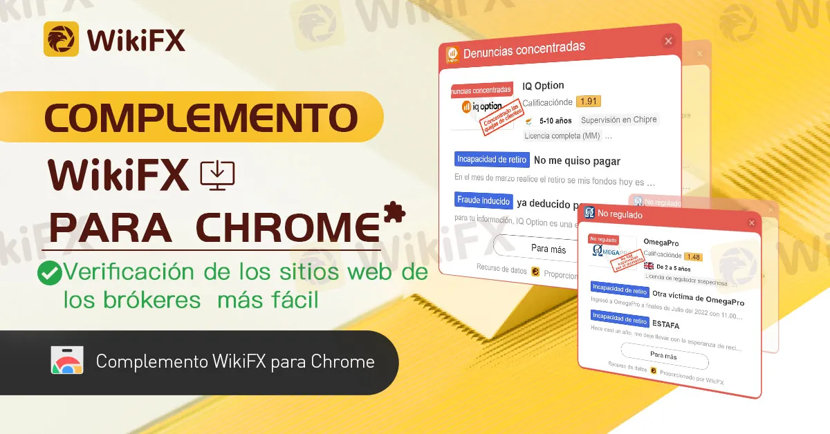 La herramienta WikiFX Chrome es un complemento de computadora que puede ayudarlo a determinar la legitimidad del sitio web de un broker. Con un solo clic, la aplicación puede comparar el sitio web del broker con el directorio de WikiFX y brindarle la información que necesita para evaluar la confiabilidad del broker.