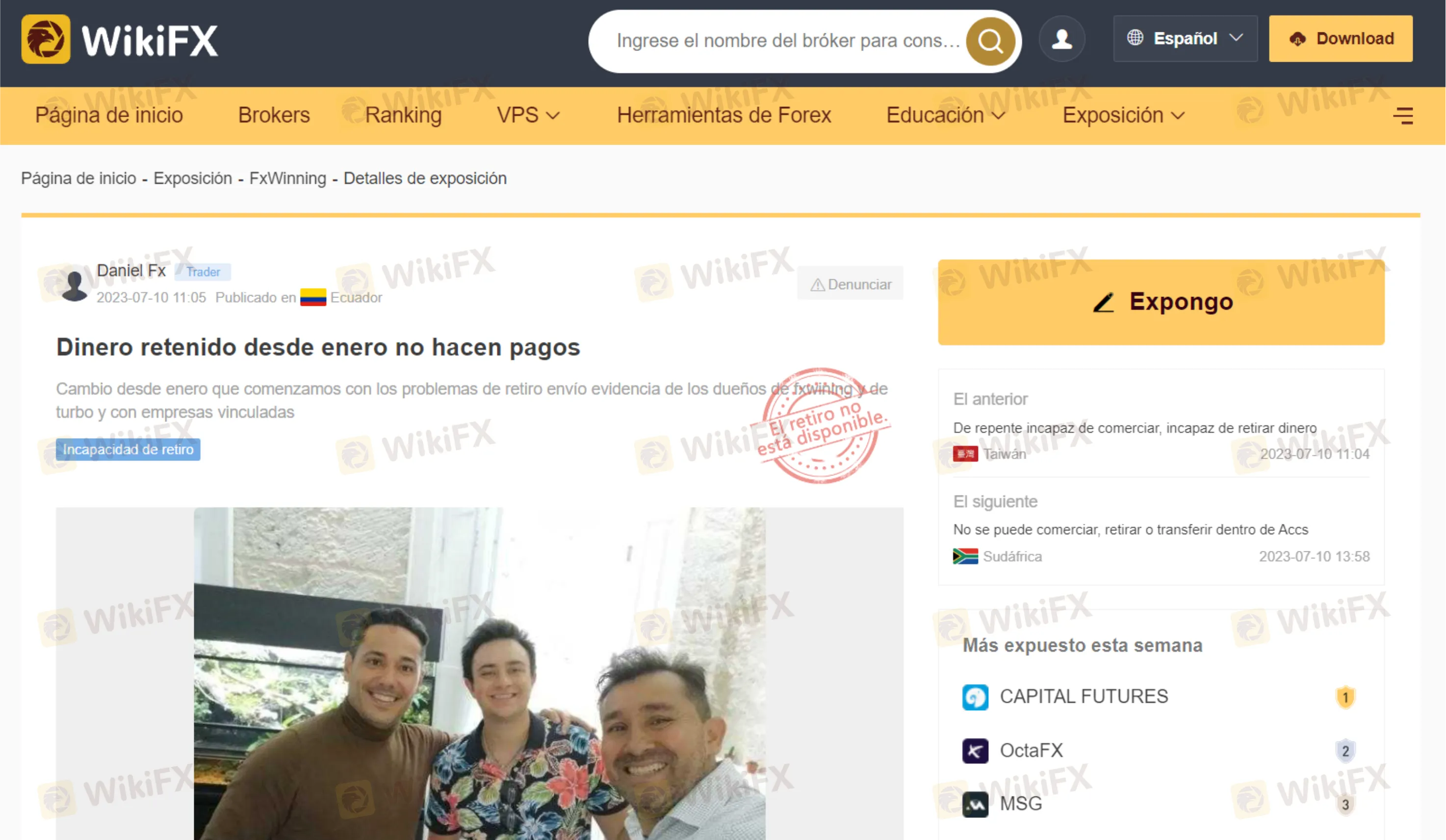 Extracto:En un caso preocupante que ha salido a la luz recientemente, un cliente del broker "FxWinning" ha denunciado una presunta estafa después de experimentar una retención de fondos y la falta de pagos desde enero. Esta situación ha generado una creciente preocupación entre los inversores, quienes confiaron en la reputación del broker para manejar sus transacciones financieras.