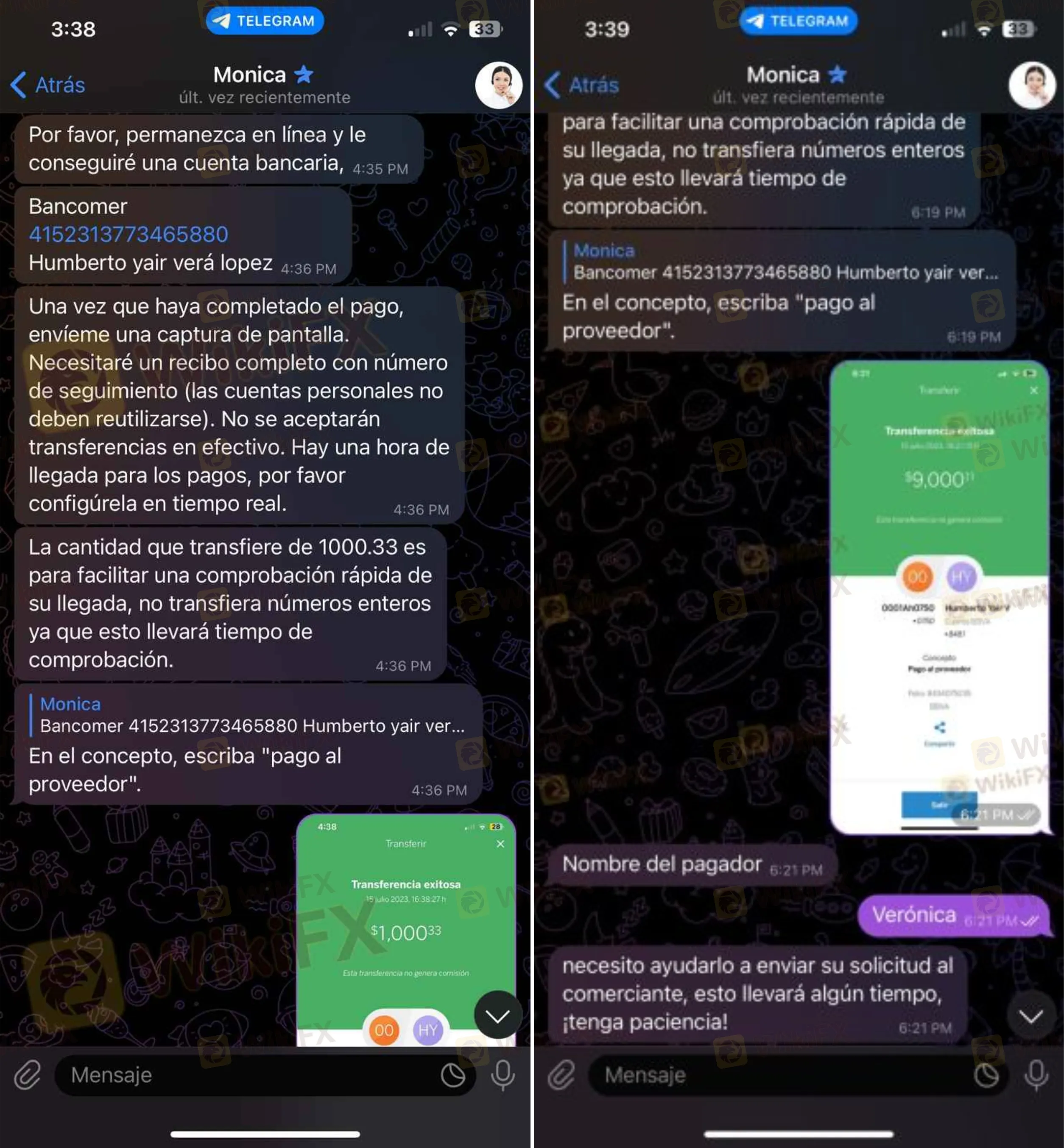 A medida que avanzaba en las tareas, Verónica fue dirigida a otro reclutador llamado Xever Herro, quien utilizaba el nombre @fa8588 en Telegram. Herro la presionó para unirse a un grupo de cuatro personas con el supuesto propósito de invertir. Prometió que estas inversiones terminarían en dos o cuatro tareas y que solo necesitaba depositar 1000.33 pesos. Sin embargo, se encontró con una sorpresa desagradable cuando se le exigió otro depósito forzoso de 9000.11 pesos debido a un supuesto error.