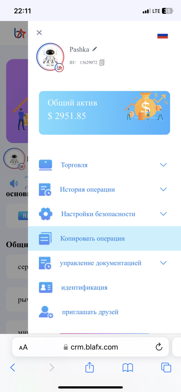 Добрый день! Возникла проблема с выводом средств на платформе Blafx,которая длится уже не первый день, До этого в поддержке писали ожидать 24 часа и в течение этого времени средства должны поступить на ваш счёт,по факту ничего не приходит, далее я снова писал в поддержку они написали лишь то что якобы много клиентов выводят средства и необходимо ожидать,до этого все было в порядке ,и такая проблема сейчас у всех кто пытается вывести средства,после нескольких дней появились новости что на платформе вышло обновление и аккаунты заблокировали и теперь просят для того чтобы вывести деньги необходимо пополнить 10% от общего депозита средств,также не даёт отписать от трейдера к которому раннее я был подключен чтобы отправить средства на вывод.