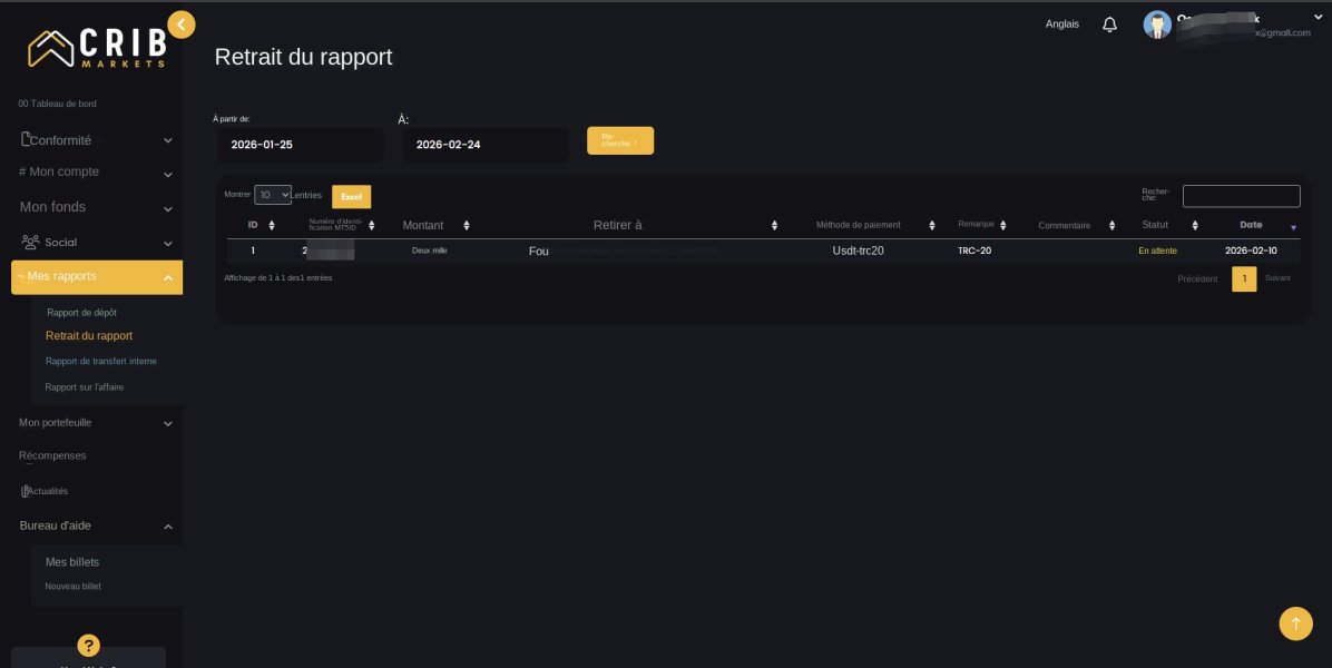 Crib Markets a refusé de payer mon profit de plus de 500 $. Ils ont maintenu mon retrait en attente pendant 15 jours puis ont supprimé mes profits, affirmant que ma stratégie de trading était 'toxique' seulement après que j'ai réalisé un profit. Ils ont seulement retourné le dépôt initial. Ceci est un cas clair de saisie de profits. Identifiant du compte : 213263*****
