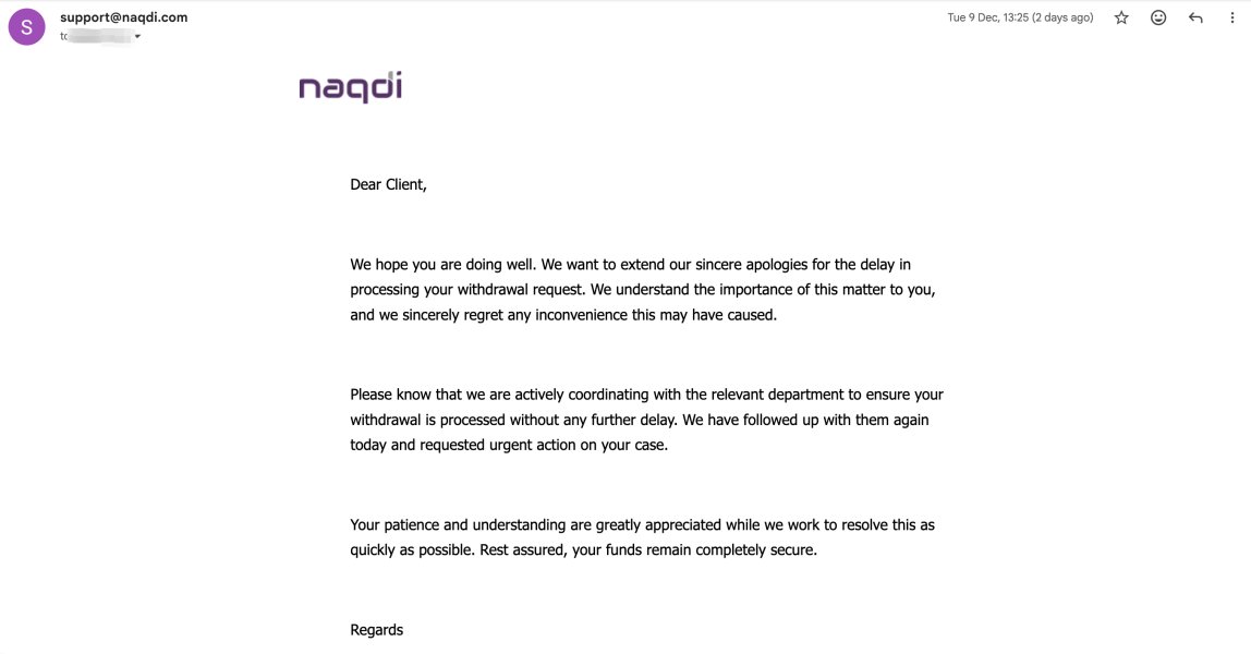 Penarikan saya disetujui pada bulan September tetapi tiga bulan telah berlalu dan dana belum sampai di dompet kripto saya. Mereka terus membuat alasan dan menolak mengembalikan dana saya.