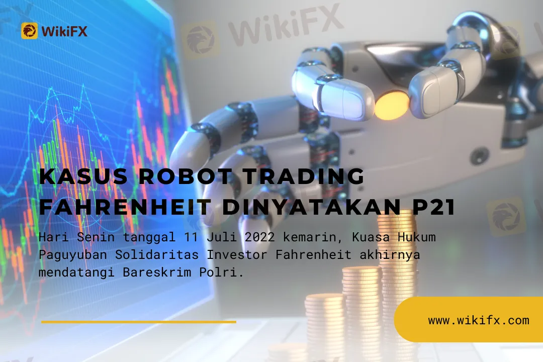 Hari Senin tanggal 11 Juli 2022 kemarin, Kuasa Hukum Paguyuban Solidaritas Investor Fahrenheit akhirnya mendatangi Bareskrim Polri. Mereka telah mendapatkan informasi terkait perkara FSP Fahrenheit ini sudah dinyatakan lengkap atau P21 dan sudah siap di sidang. Menurut berita yang WikiFX terima, penyidikan terkait kasus penipuan investasi berkedok robot trading Fahrenheit ini telah diverifikasi dengan total kerugian mencapai Rp259,8 miliar dan melibatkan sebanyak kurang lebih 800 korban.