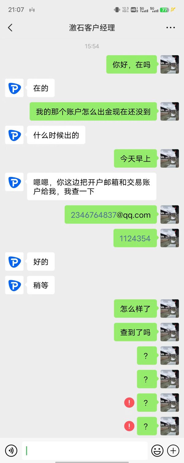 在激石交易不给出金,对接好久的客户经理突然消失,平台请给我一个反馈