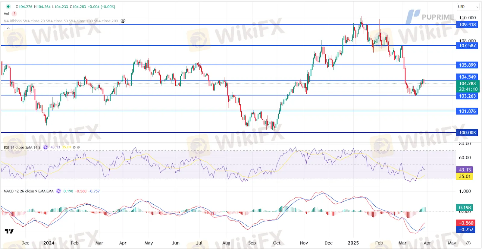 The Dollar Index is trading lower following the prior retracement from the resistance level. However, MACD has illustrated increasing bullish momentum, while RSI is at 43, suggesting the index might experience technical correction since the RSI rebounded from oversold territory.