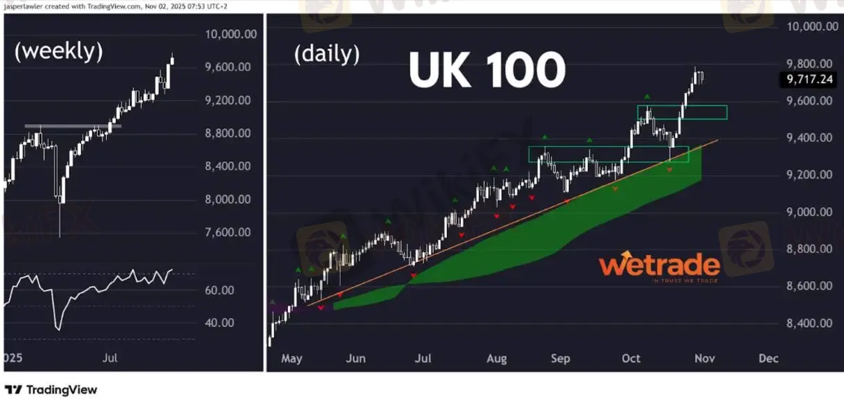 Sommario:Week Ahead📅 3-9 November, 2025Global stocks hit fresh all time highs last week with the UK and Japan leading the gains, while the US dollar ended the week on a strong footing as the British pound hit