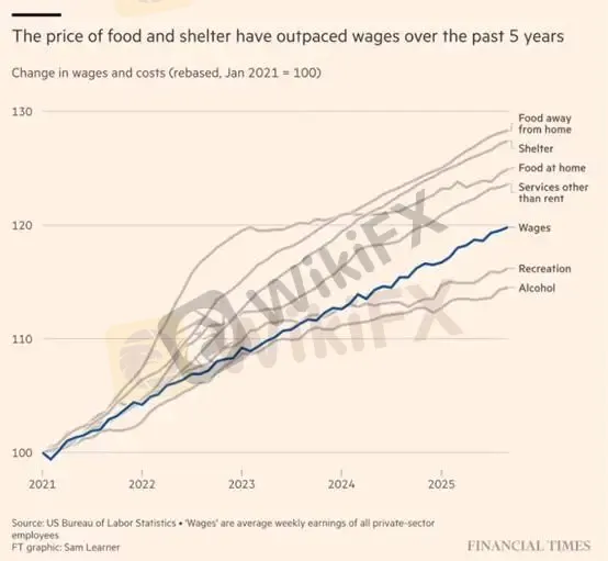 Chart 2 shows that living costs in the U.S. have surged—dining out has reached an index level of 129, while housing inflation ranks as the second-highest cost increase, making rent and shelter one of the largest financial challenges for households.