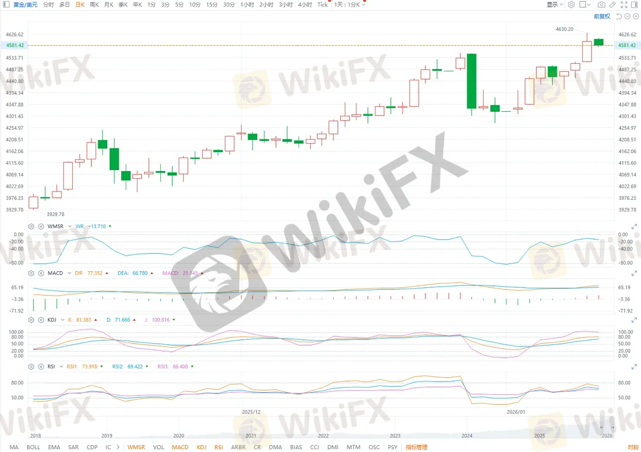 According to ETO Markets monitoring, on January 12 (Monday), spot gold surged sharply, rising nearly 2% on the day to close at USD 4,597.21 per ounce. Prices briefly touched an intraday high of USD 4,630.08, setting a fresh record. At the same time, U.S. February gold futures gained around 2.5%, settling at USD 4,614.70.