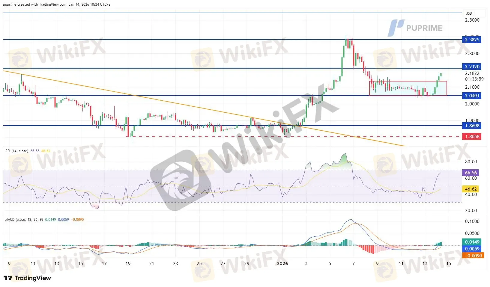 The technical posture for XRP has shifted from neutral to bullish following the confirmed range breakout. The convergence of positive price structure and improving momentum suggests the trend reversal is credible. While the RSI approaching overbought levels may precede short-term consolidation, the primary direction is now higher. The bullish outlook is contingent upon the asset maintaining its position above the new support near 2.0400. A sustained move below this level would indicate a failure of the breakout and likely reinstate a period of range-bound trading.