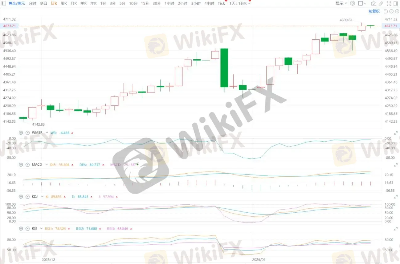 According to ETO Markets monitoring, on January 19 (Monday), spot gold rallied sharply as risk-off flows accelerated on renewed tariff and geopolitical uncertainty. Prices set a fresh record intraday at USD 4,690.46 per ounce. Gold closed up about 1.7% at USD 4,672.49 per ounce, marking a strong one-day move.