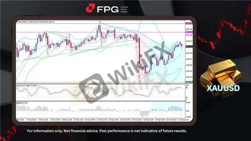 On the H1 timeframe chart, XAUUSD (Gold) previously moved within a relatively stable sideways range with a slight bullish bias, reflecting controlled upward pressure. However, the market then experienced a sharp and significant price drop from 5083 to 4878, indicating strong selling momentum and a temporary breakdown of the prior structure. From that low, a technical bounce emerged, followed by a fairly consistent and structured recovery phase supported by renewed buying interest. The current price is trading around 5025, as volatility moderates following the earlier spike, suggesting the market is stabilizing while maintaining a short-term recovery tone.