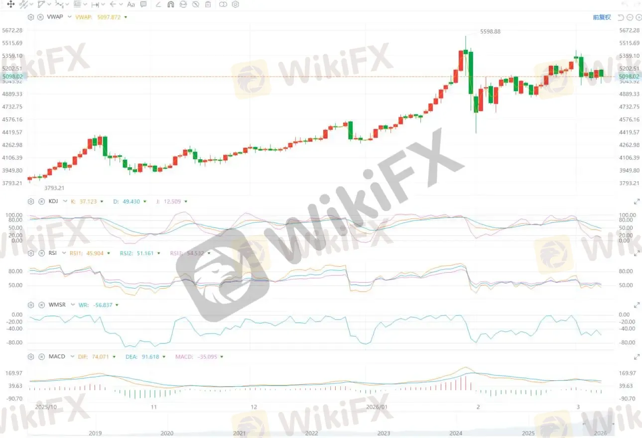 During Asian trading on March 9 (Monday), spot gold moved lower and briefly fell below the USD 5,100 psychological level, touching an intraday low of USD 5,044.51/oz.