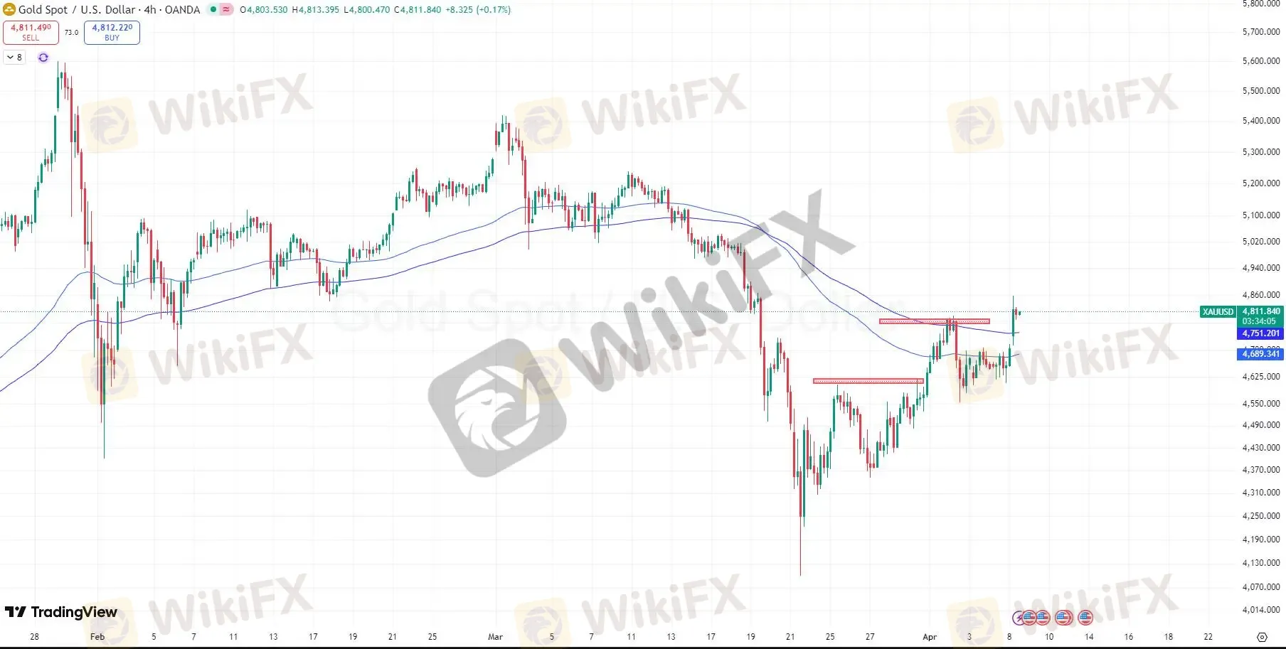 Following U.S. President Trumps announcement of a two-week ceasefire with Iran, market risk-off sentiment eased significantly, while U.S. 10-year Treasury yields began to trend lower, indirectly supporting further upside potential for gold.