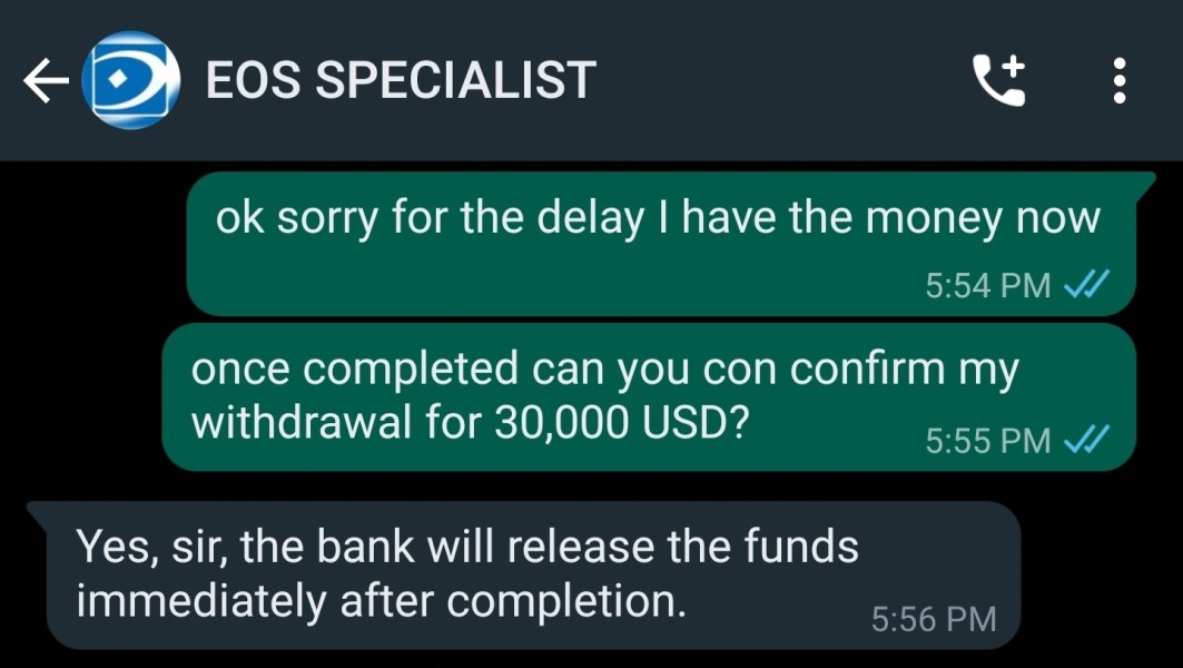 提供された情報によると、出金リクエストは EOS Global通常、処理には約 2 営業日かかります。