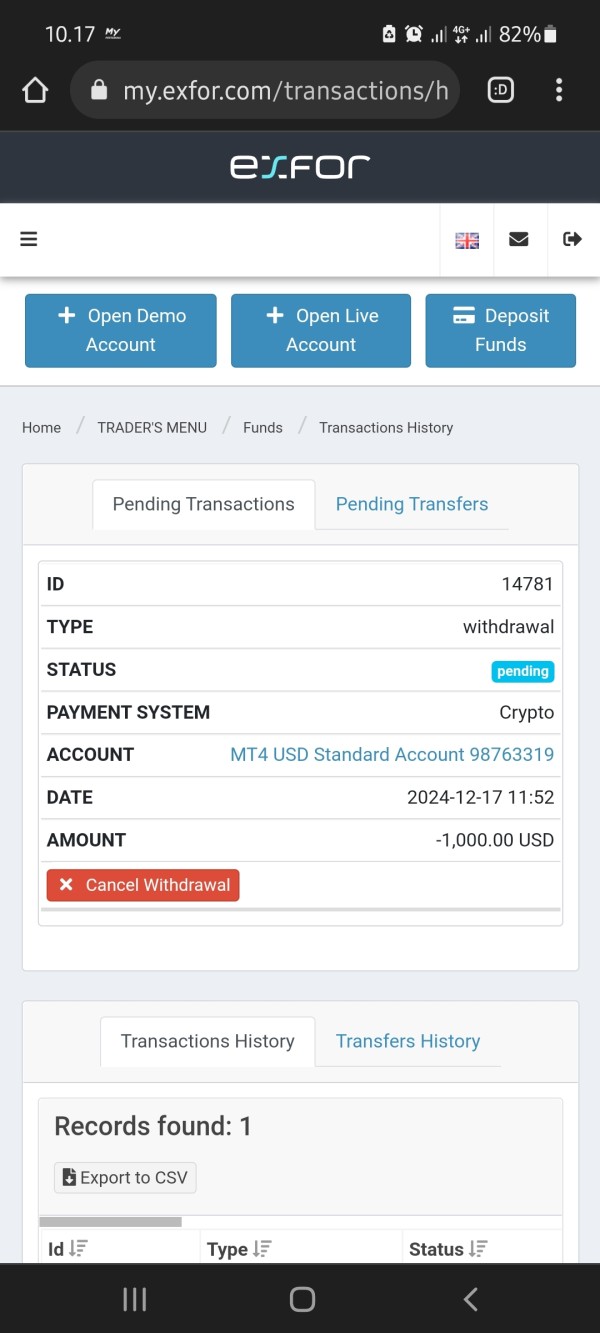 ブローカーは、メールや出金のリクエストに対して応答しませんでした
