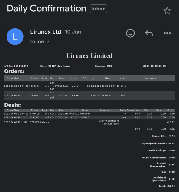 Lirunexプラットフォームが突然私のアカウントを終了しました