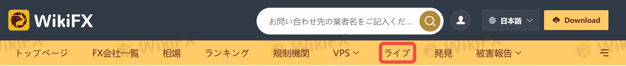 WikiFX公式サイトで「ライブ」をクリックして視聴することができます。